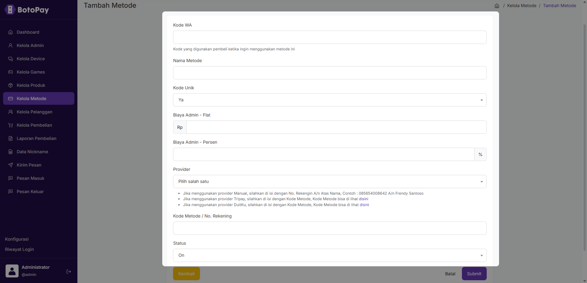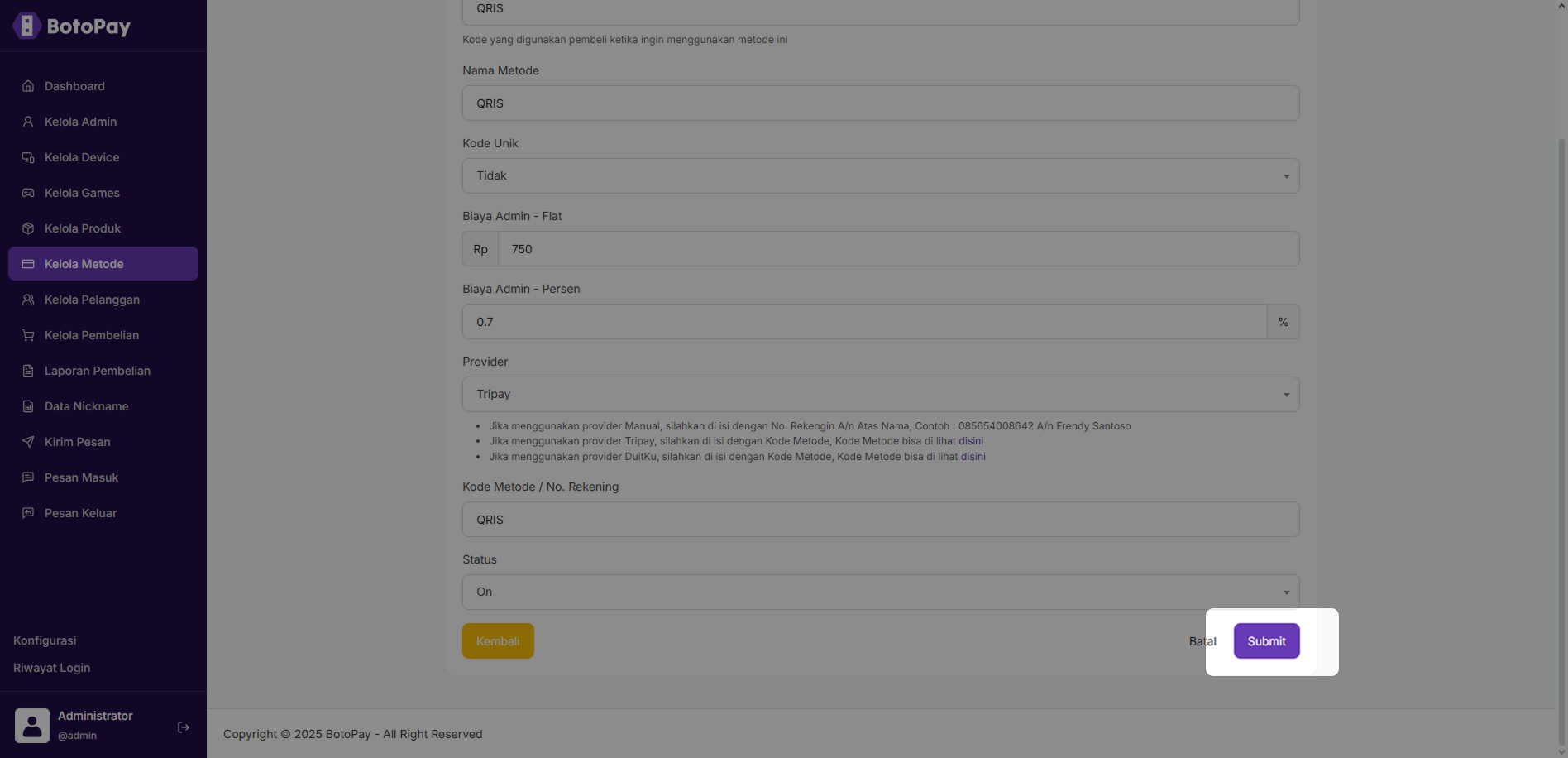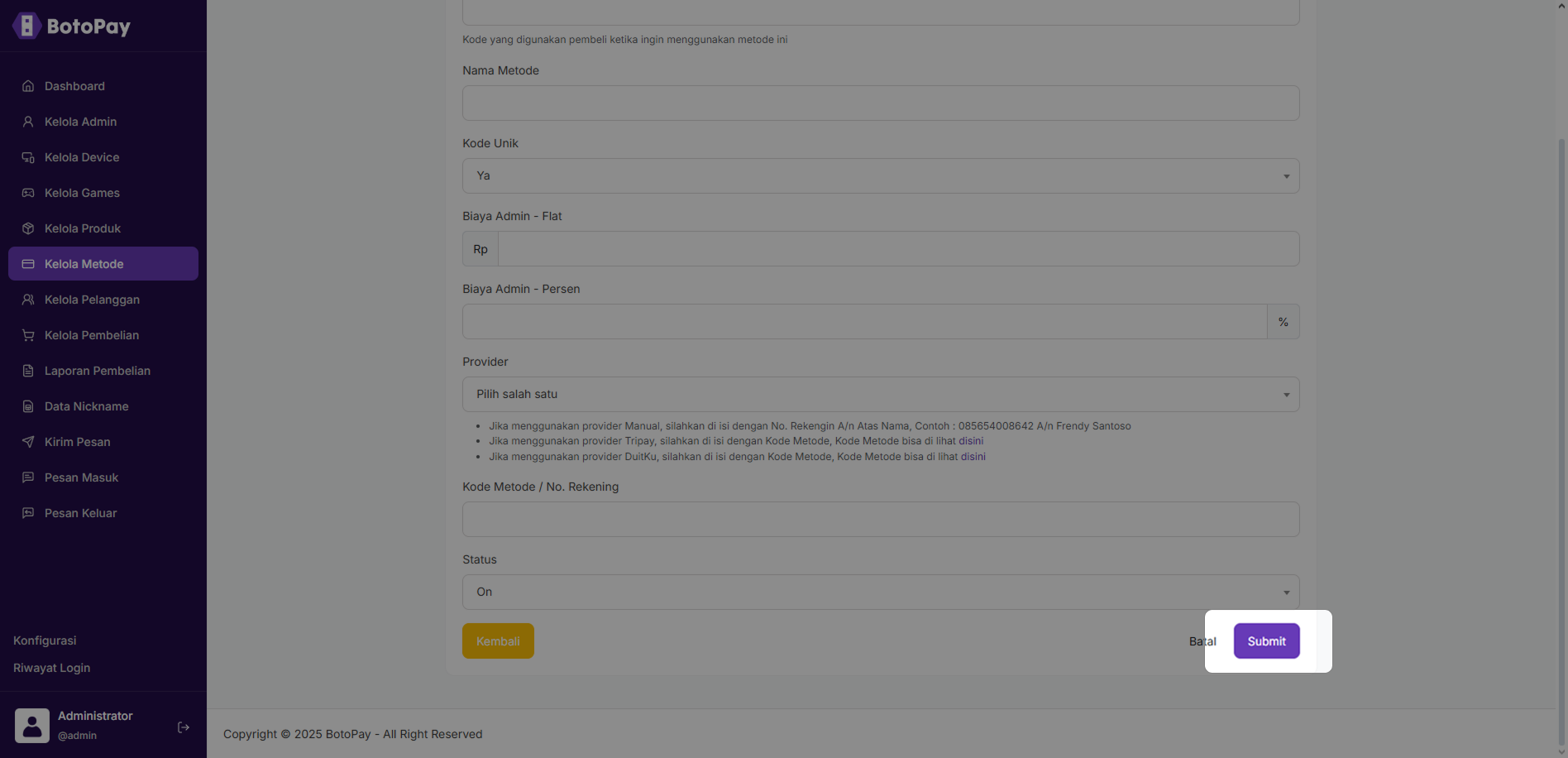 2. Klik “Tambah Metode” pada halaman Kelola Metode.