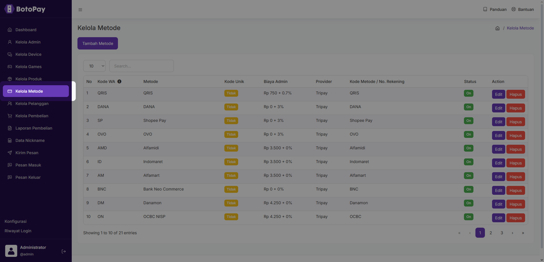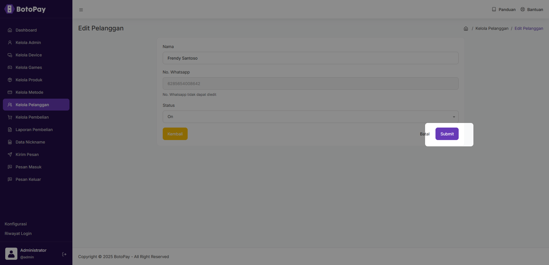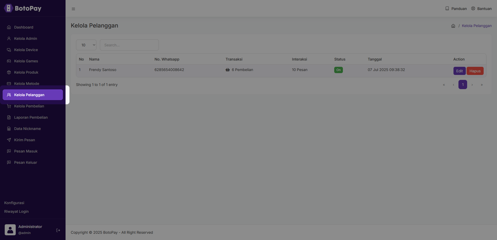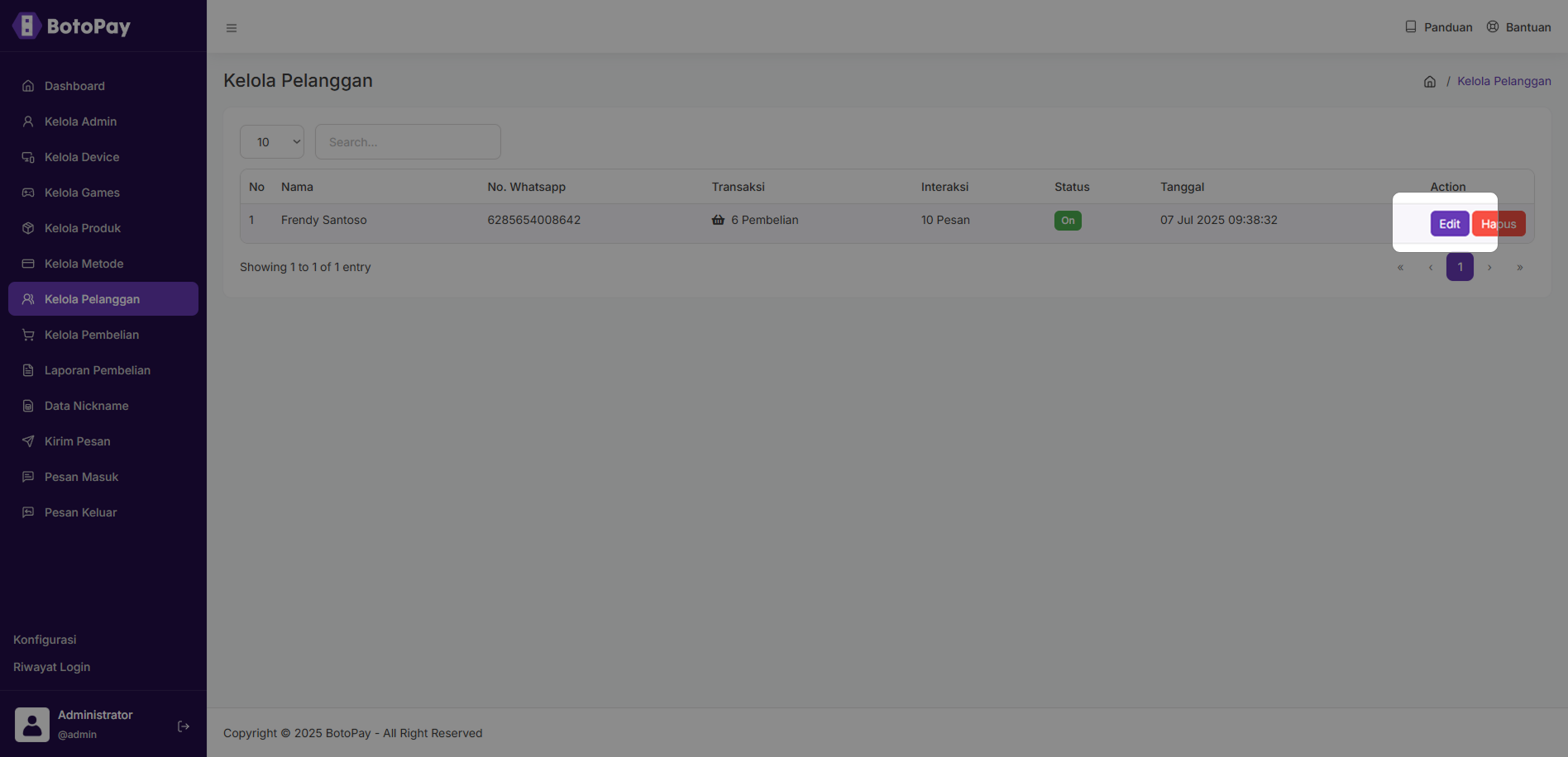 2. Klik “Edit” pada kolom pelanggan yang ingin kamu edit.