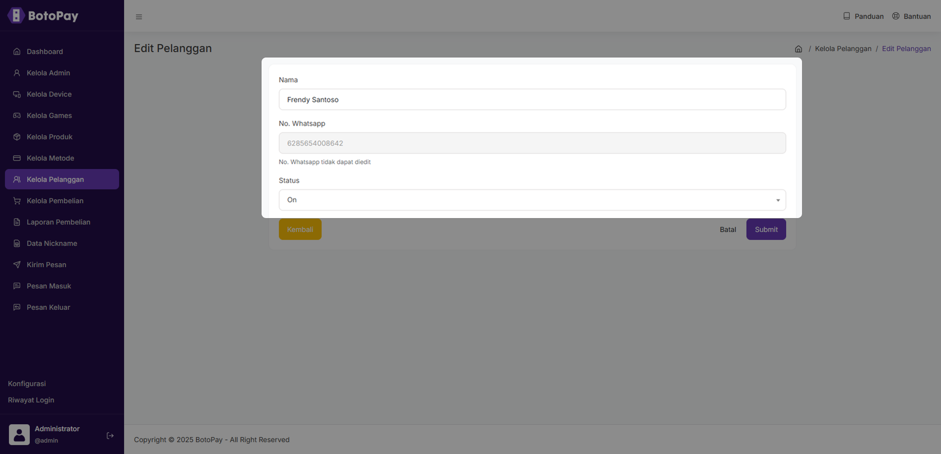 3. Isi kolom edit pelanggan seperti berikut :