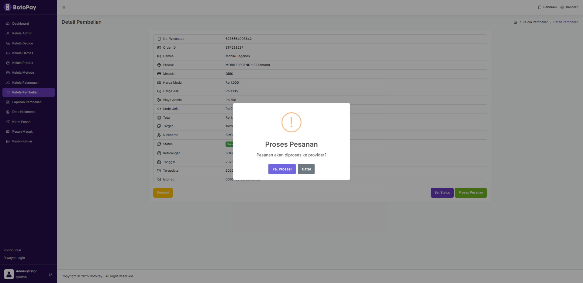 6. Klik “Proses Pesanan” jika kamu ingin mem proses pesanan tersebut.