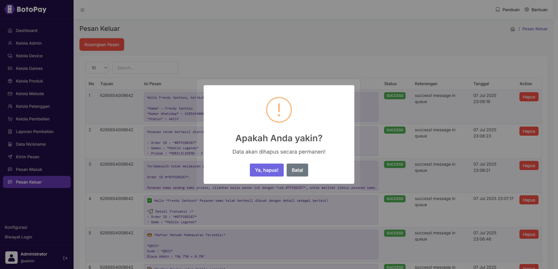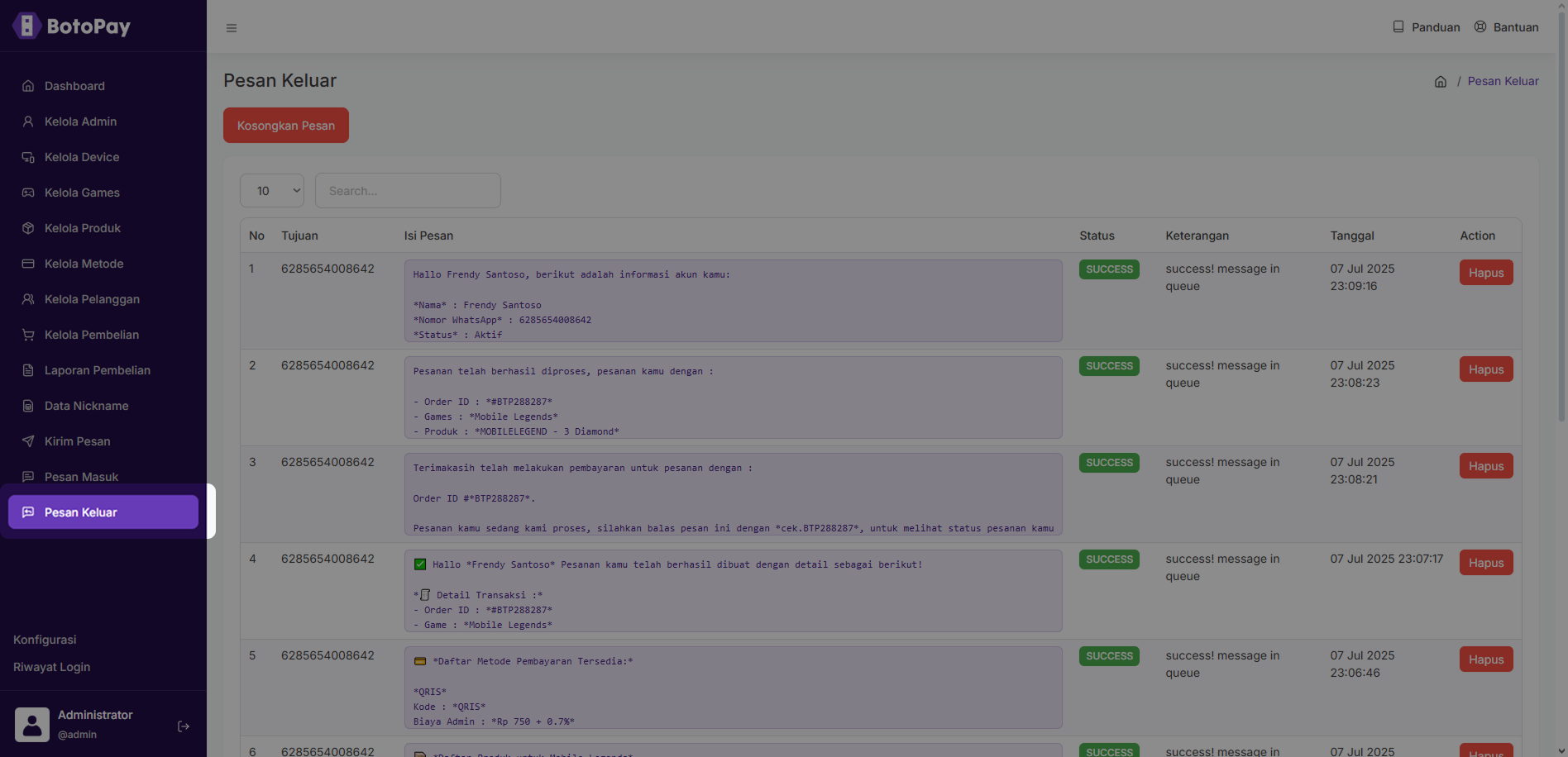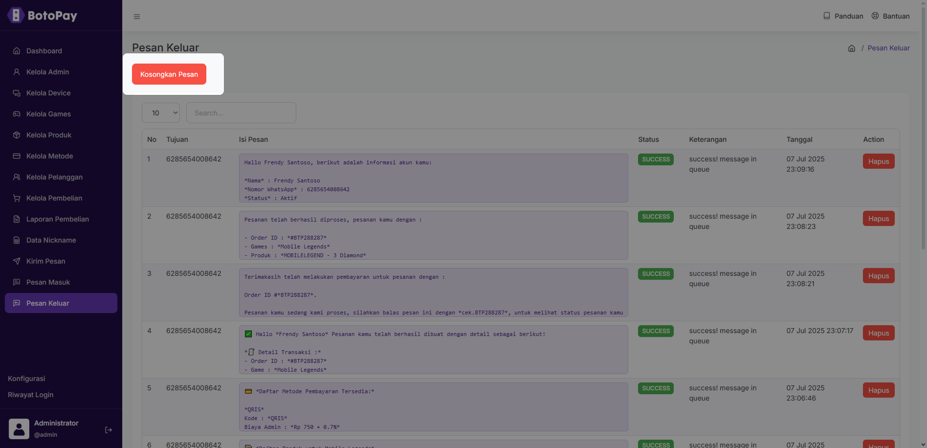 1. Pada halaman dashboard admin, klik “Pesan Keluar”.