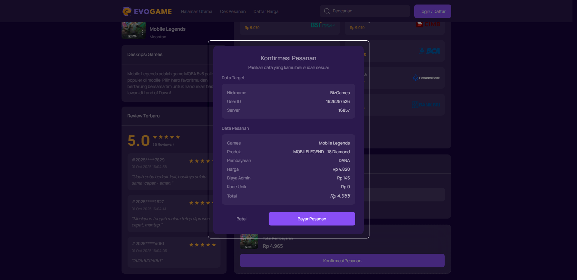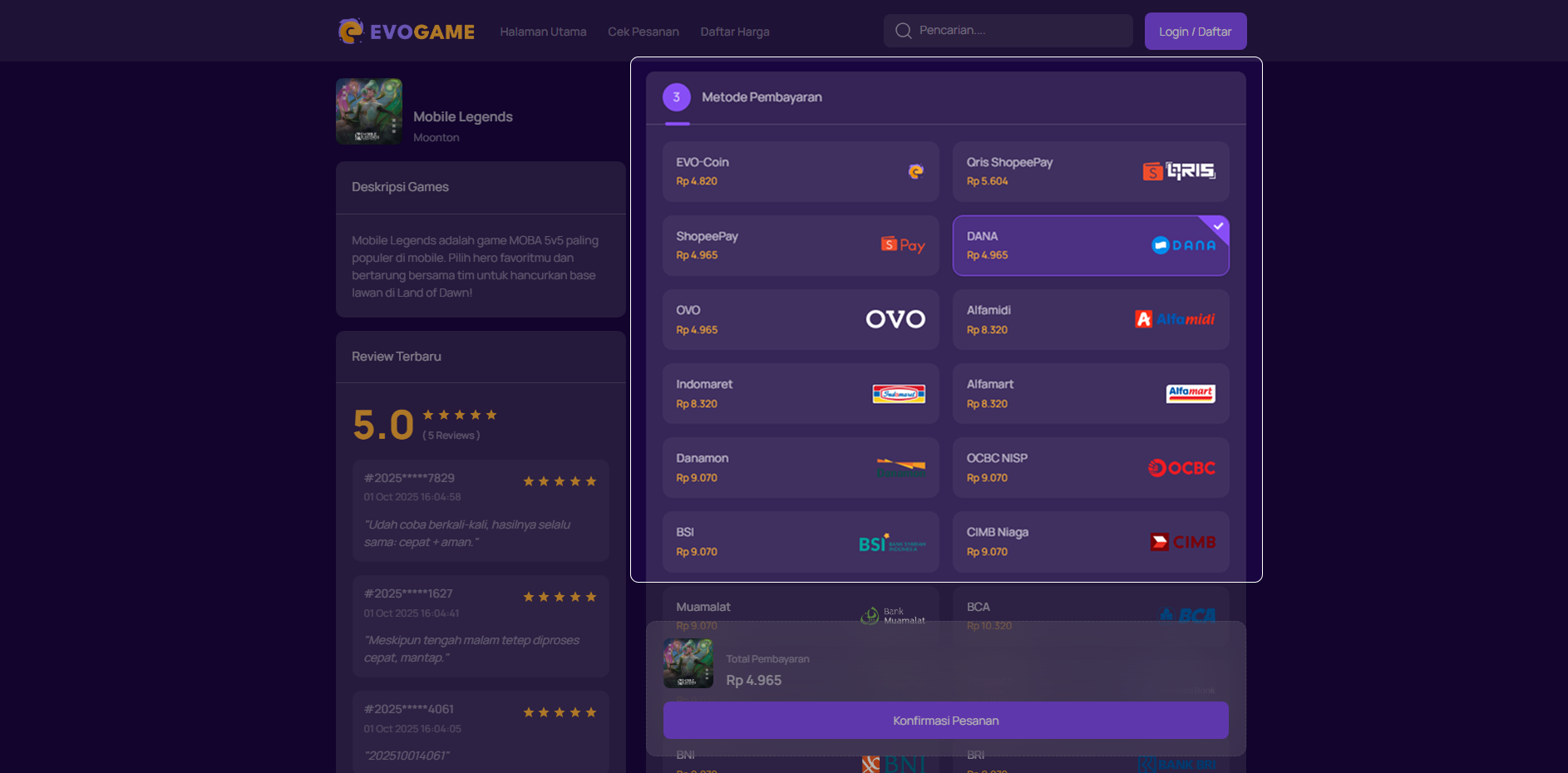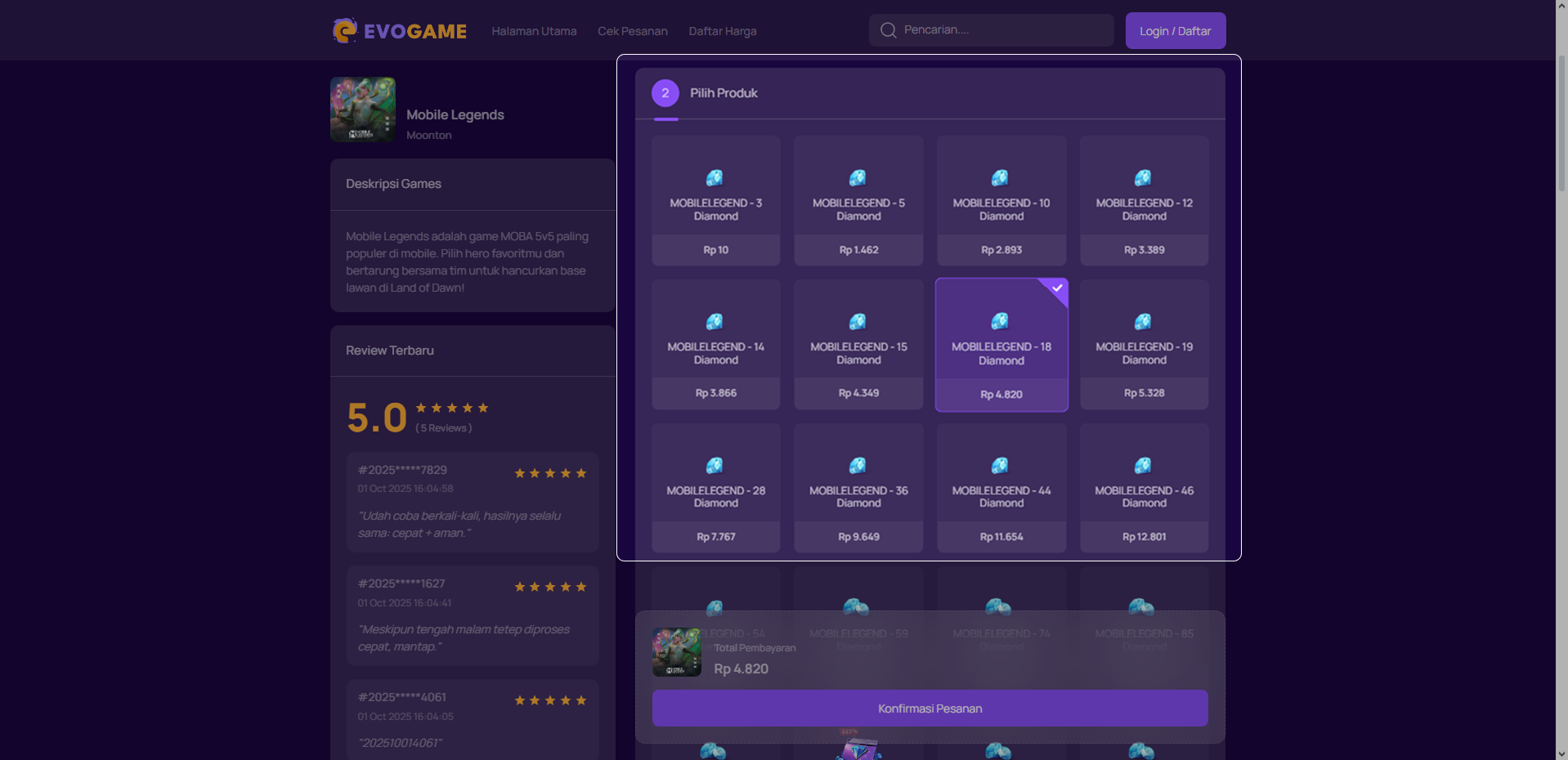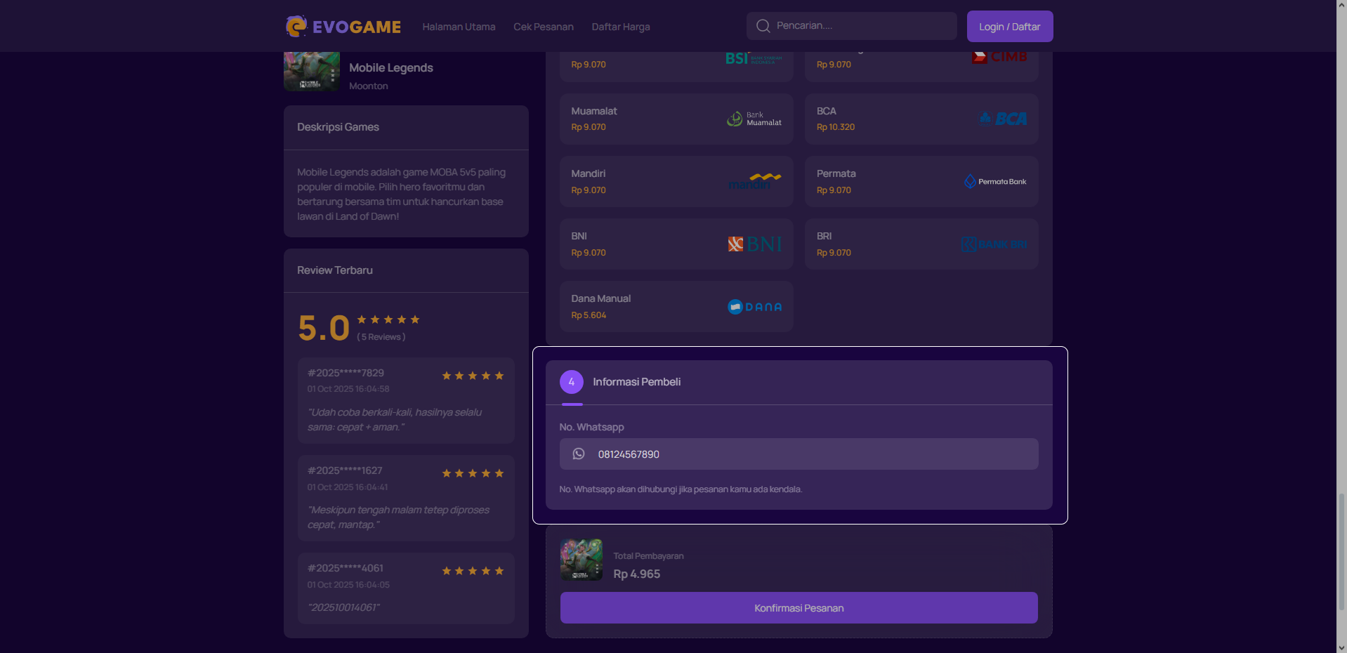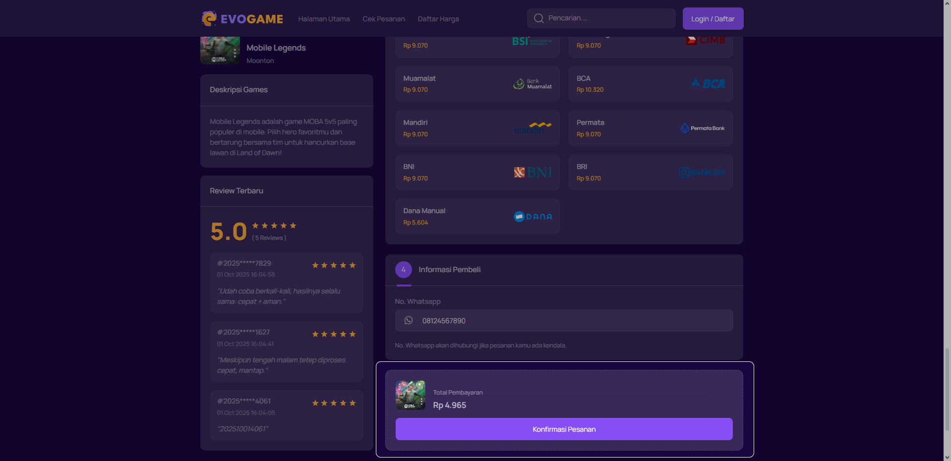 6. Klik “Konfirmasi Pesanan” untuk melanjutkan.