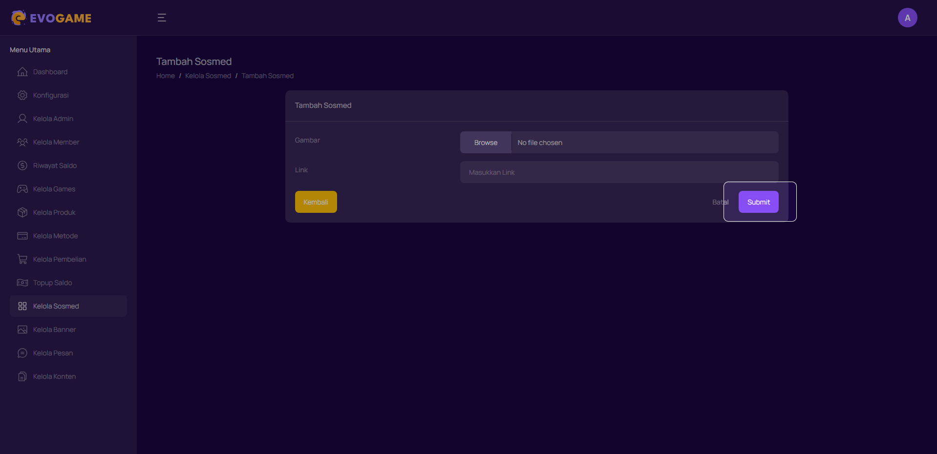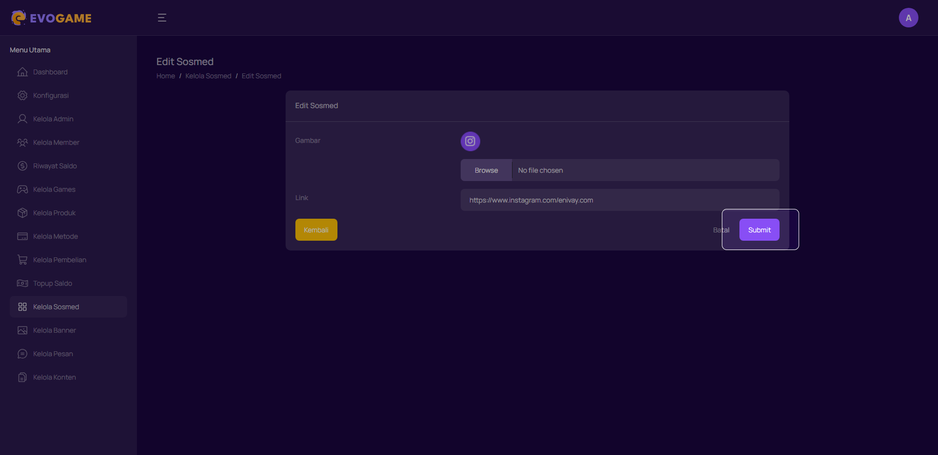 4. Setelah semua kolom sudah diisi, klik “Submit” untuk menyimpan sosmed baru.