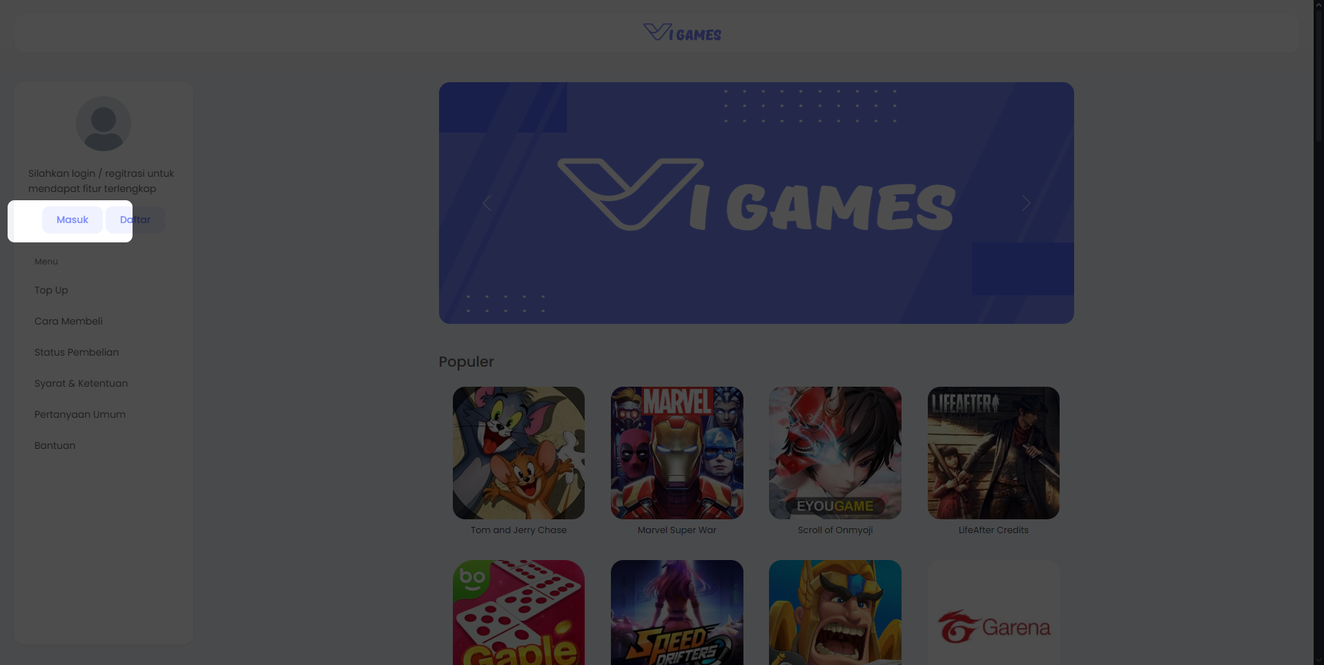 Pada tampilan awal atau dashboard silahkan klik “Masuk”.